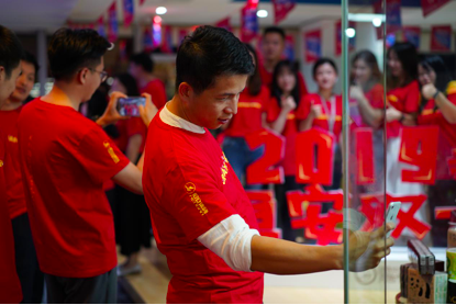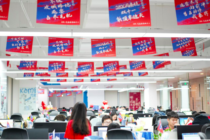 10号晚上电商办公室也组织了一场别具生面的“我在尊龙双十一”文化活动为双十一销售助威,运营中心副总裁许清池,共享中心副总裁刘莹,女性健康产业发展部总裁许自淡等集团多位领导也赶赴现场,在零点时一同等待双十一销售拉开序幕。