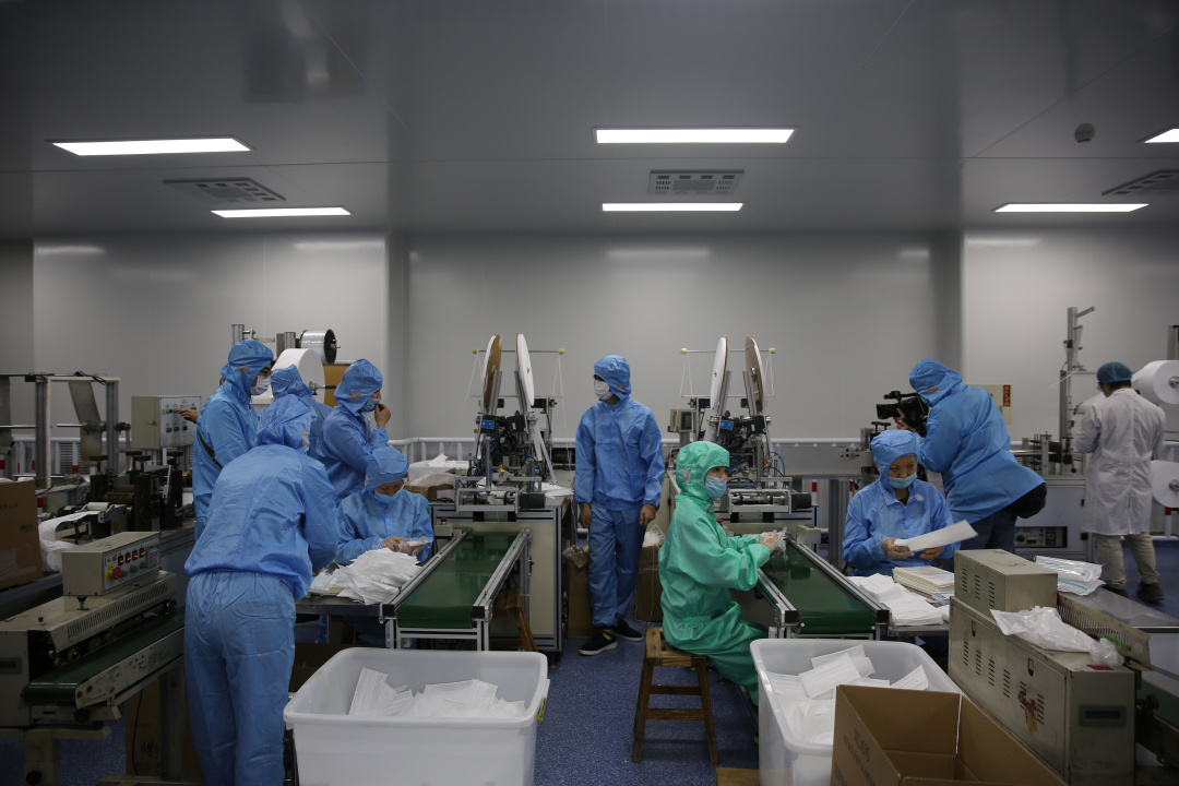 215日,星空娱乐集团新引进的口罩生产线全力开动,正式出产医用口罩产品。据悉,该批5条生产线满负荷运转后,日产口罩约50万片。此前的24日,星空娱乐集团联合晋江兴德织造有限公司启动了防护服生产,目前日均产能可达1000件。